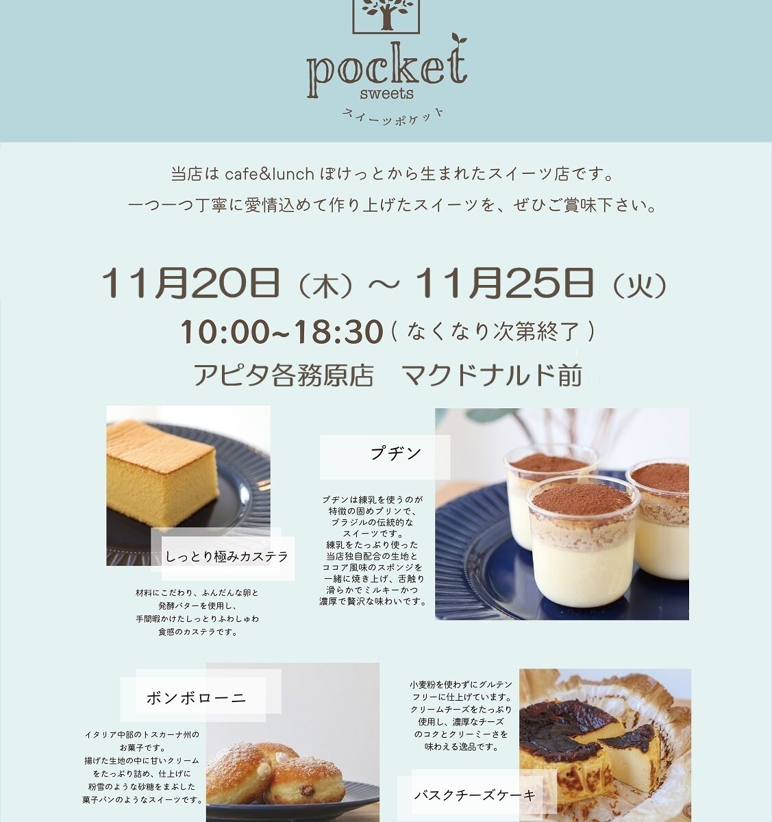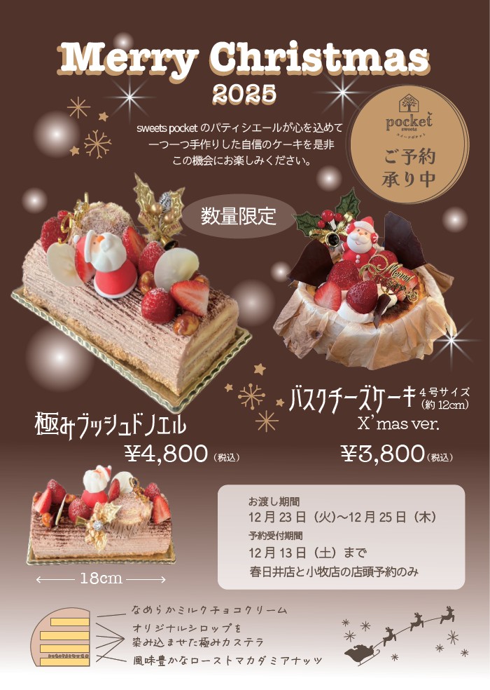 只今ぽけっとではクリスマスケーキのご予約を受け付けています。